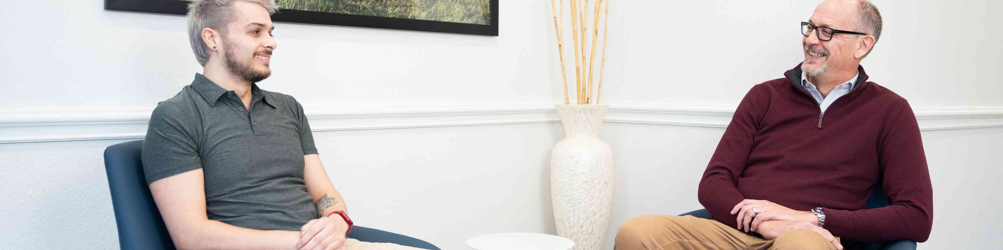 Patient and therapist meet 1-on-1 to work through difficult emotions and behavioral challenges in a personal, private setting.